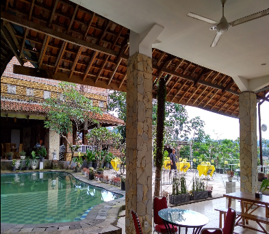 tempatnya lumayan asik kita bisa makan sambil melihat pemandangan kampung-kampung dan sungai. Jika cuaca cerah juga bisa lihat gunung salak. Pelayanan cukup bagus dan sigap. Mbaknya ramah dan sabar juga. Makanannya sangat enak dan harganya juga lumayan. Menunya adalah menu porsi besar jadi emang sebaiknya makan disini itu rame-rame.
