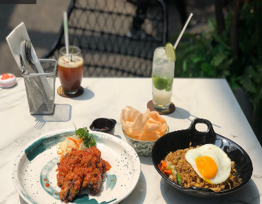Dibuat dengan desain yang sangat maksimal membuat para konsumen terkagum akan keindahan yang disajikan direstoran ini. Suasananya memang luar biasa keren, disuguhi dengan banyak pilihan tempat duduk dengan pemandangan keren-keren. bisa outdoor dan indoor.