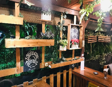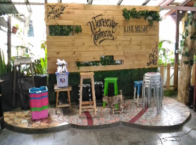 Ketika rasa haus dan lapar datang, jangan khawatir, melangkah ke sisi barat Taman Kencana beberapa meter saja Anda akan menemukan deretan cafe, salah satunya “Warung Taman” selain pelayanannya ramah, beberapa menu F&B tersedia di sini.